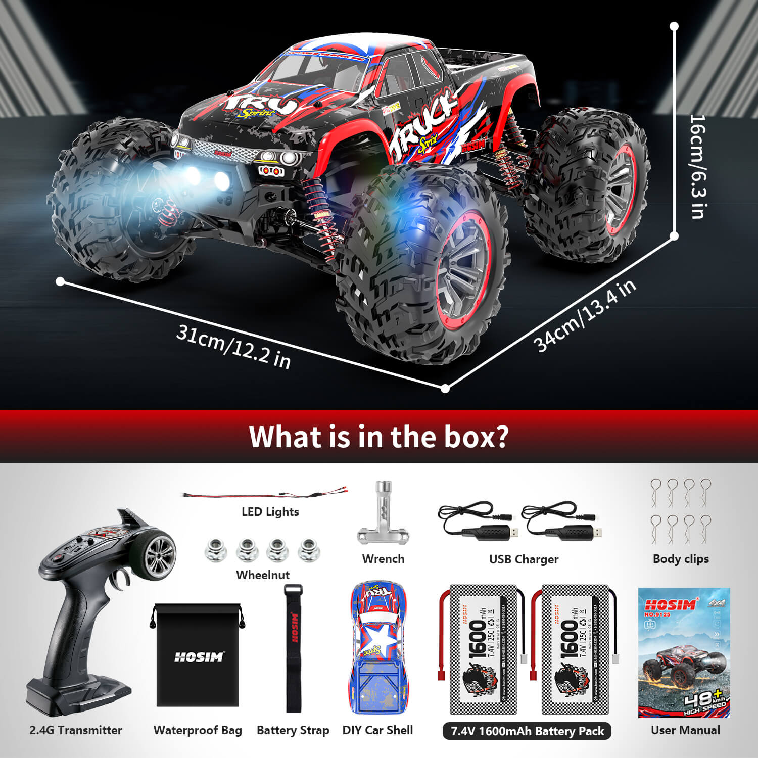 Hosim 1:10 Large Scale RC Car Monster Truck Upgraded 9125 Remote Control Car