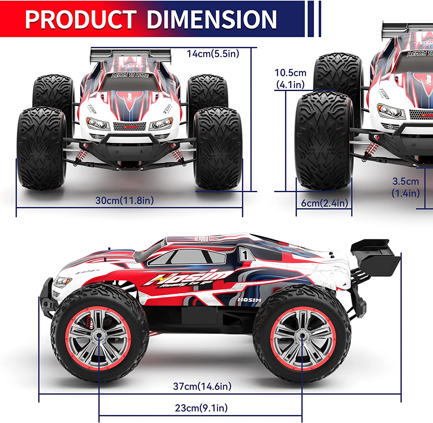 Hosim 1:10 RC Cars 2.4GHz Remote Control Car 4WD 48+ KMH Off Road Monster Truck Buggy Toy for Boys  Adults Gifts