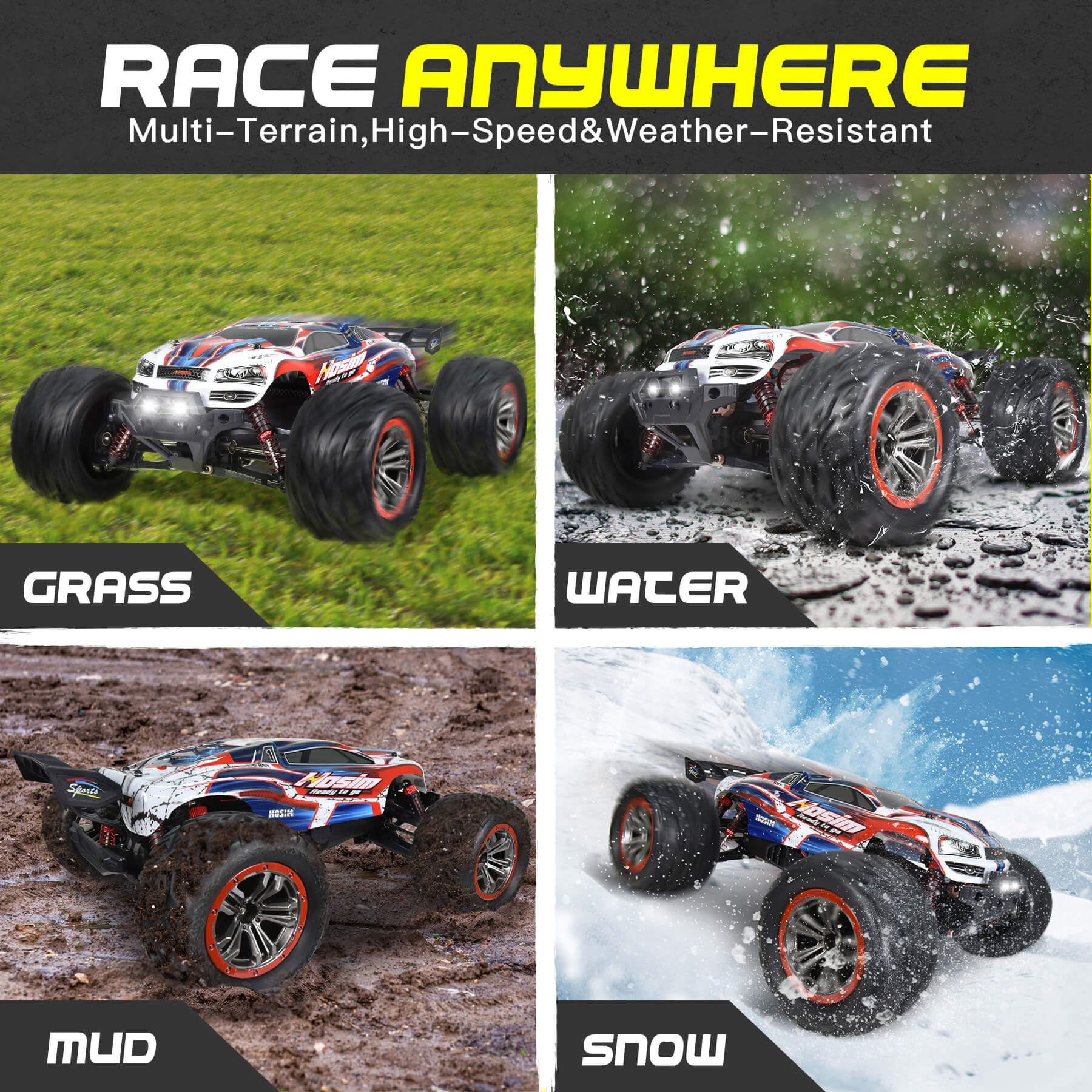Hosim 1:10 RC Cars 2.4GHz Remote Control Car 4WD 48+ KMH Off Road Monster Truck Buggy Toy for Boys Adults Gifts