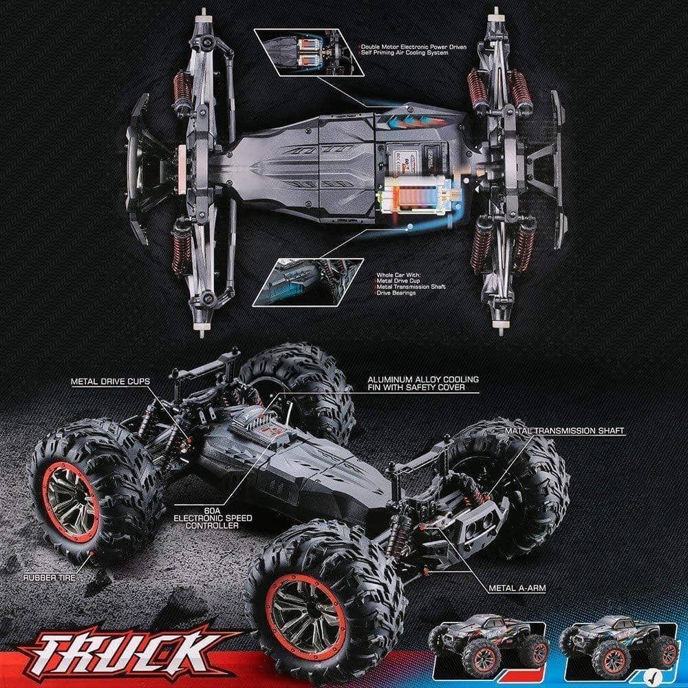 1:10 Scale big size and full proportional super-fast monster truck, all metal sealed ball Bearing are special designed for tough environments and any rugged roads.