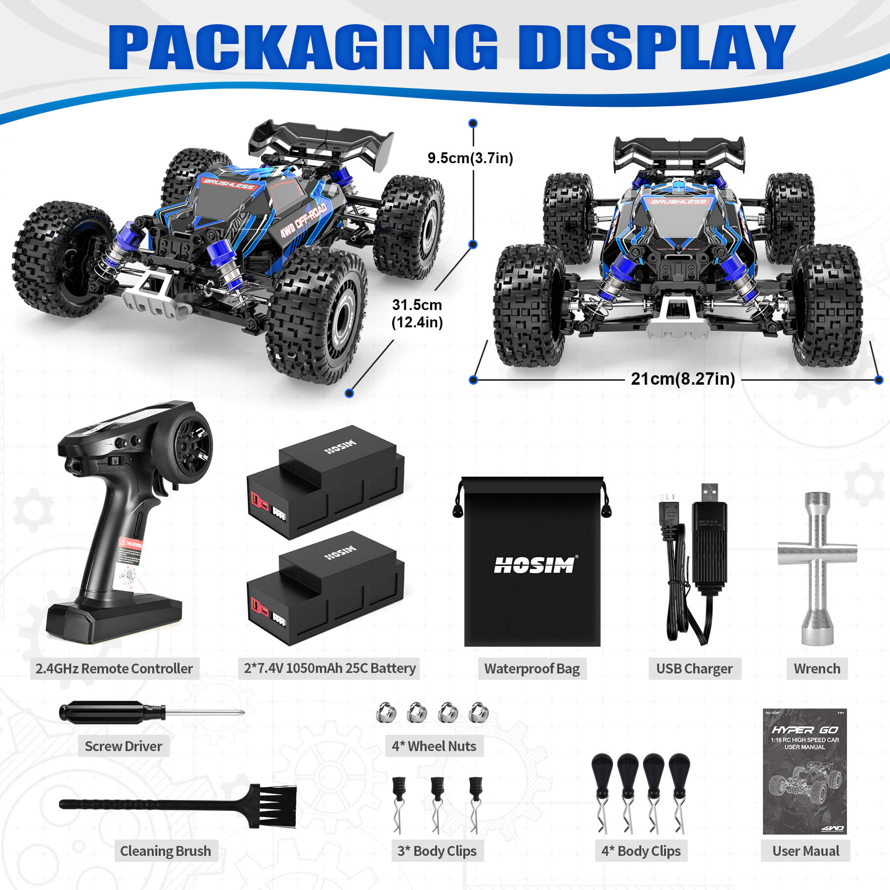 Truck Battery: 2* 7.4V/1050mAh hard case batteries (included)