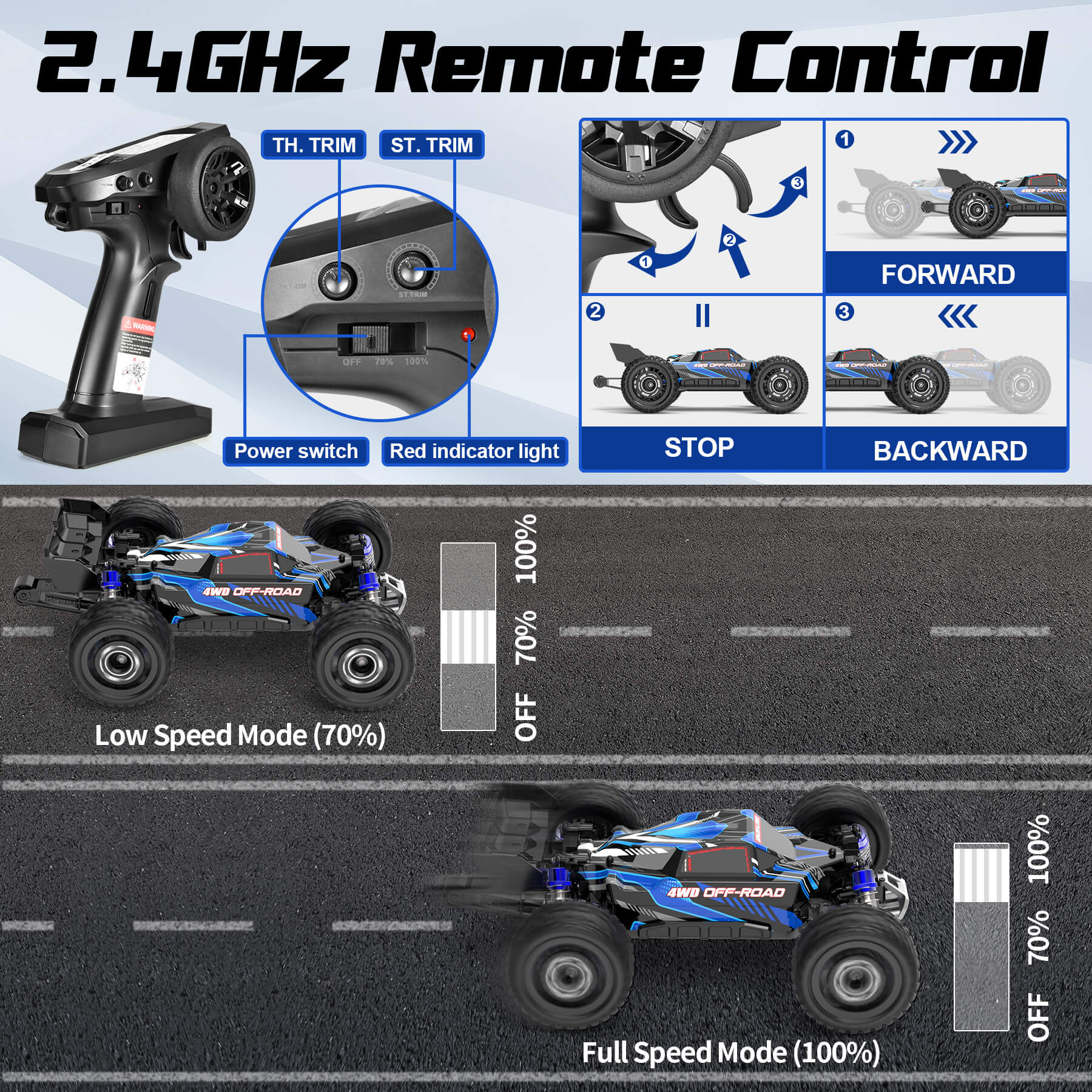 The RC Trucks come with upgraded version servo to ensure the longevity of the products. advanced linearity and accuracy with precision potentiometers,stable,low noise,water-proof