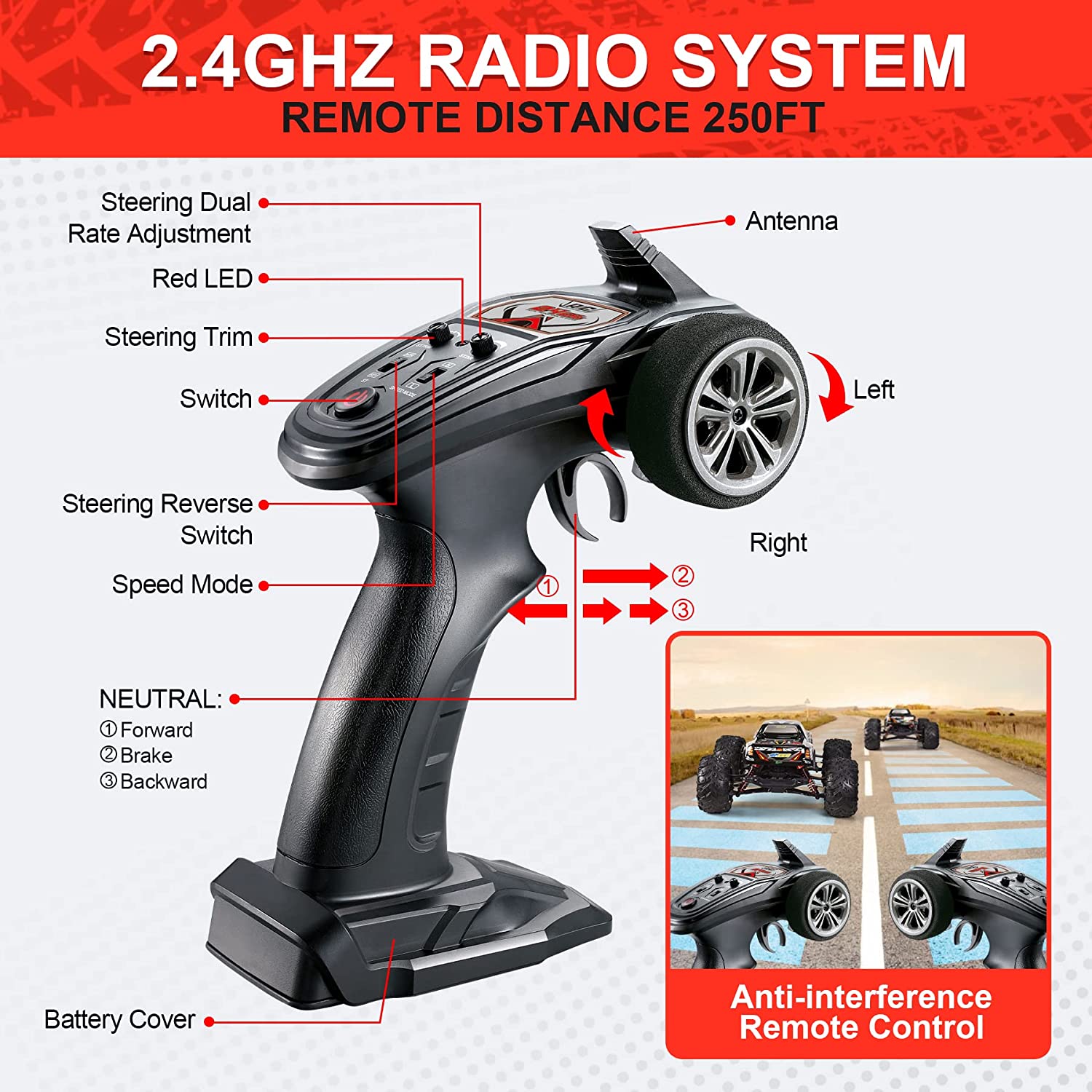With a range of up to 80m/262 ft and 2.4Ghz highly responsive steering and throttle, you can racer with your friends or kids at the same time, professional transmitter of the radio remote control car brings you a far superior experience.