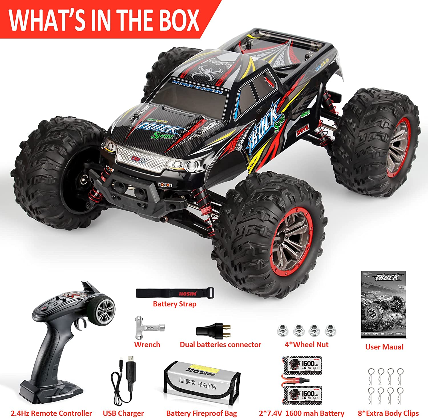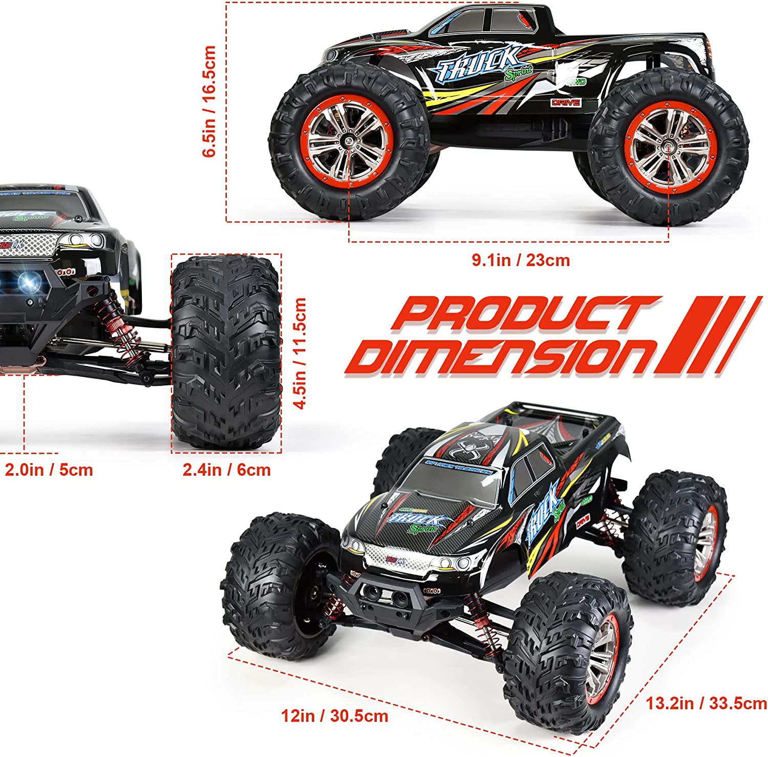 1:10 Scale big size and full proportional super-fast monster truck, all metal sealed ball Bearing are special designed for tough environments and any rugged roads.
