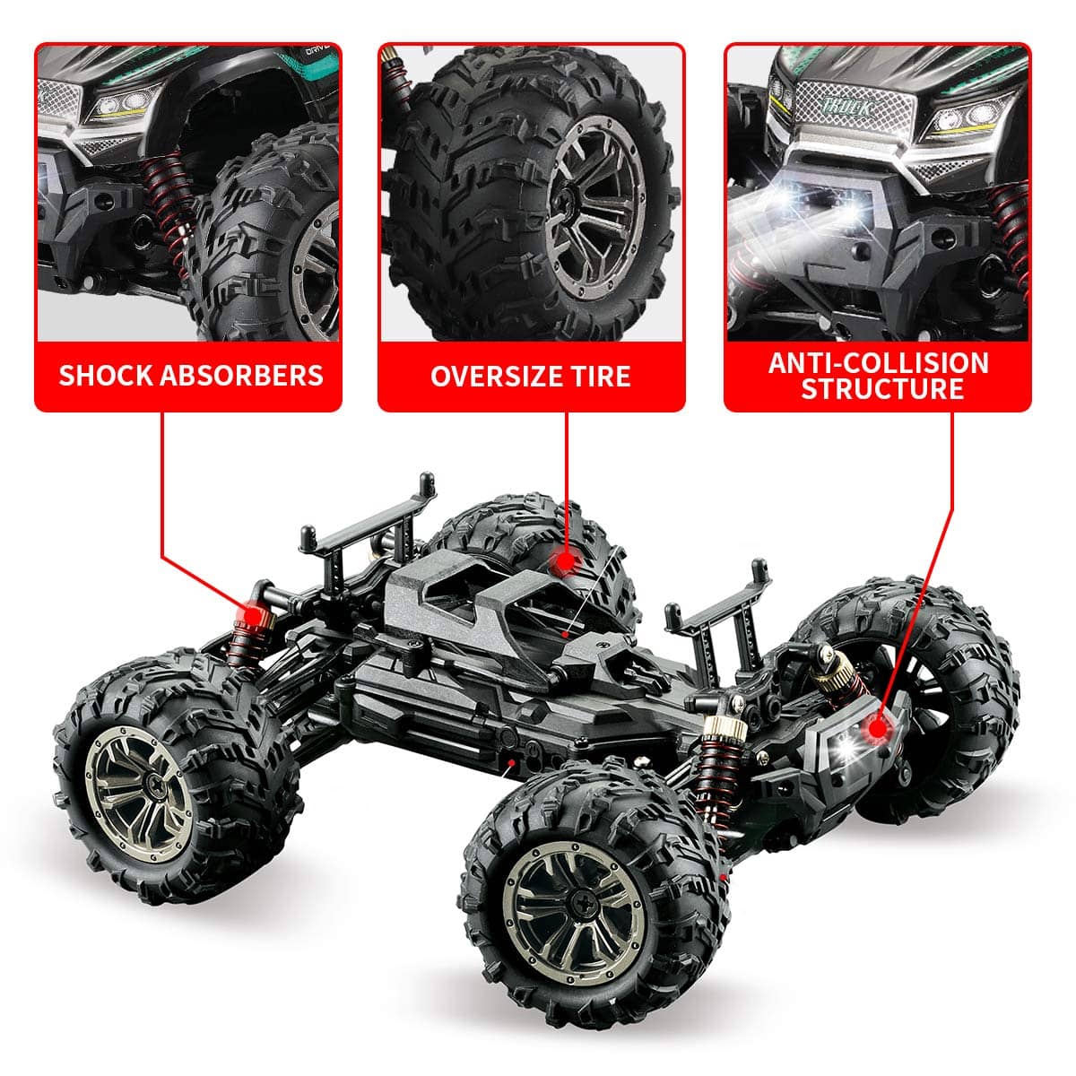 This All Terrain RC Car has no problem going through the sand, grass,wet mud and marshy land, easy to finish and enjoy lots of difficult movement. With the semi-waterproof feature, allowing for play in any weather.