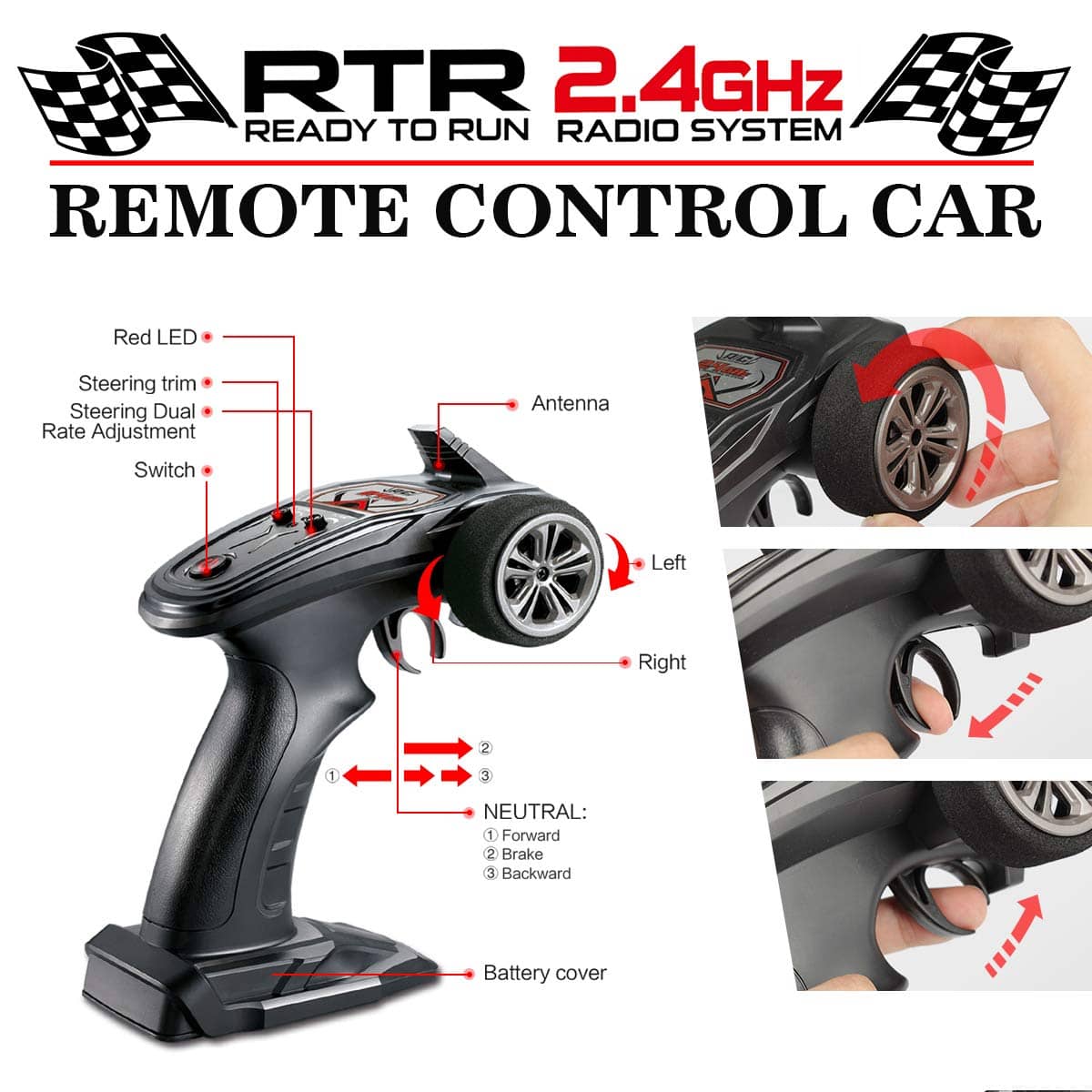 Work off 2.4GHz frequency with anti-jamming capability allows to race more than 10 cars at the same time, the same area and up to 80m/262ft remote control.