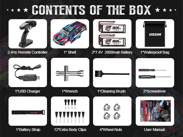 With unique design of 2 Different Color Car Shells, Red & Blue , you can choose your favorite trucks body.