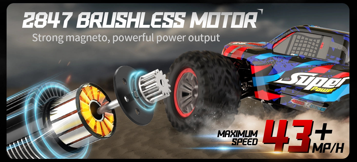 Extreme Brushless RC power 2847 brushless motor,you can break the speed limit up to about 68+KMH.Compared with the brushed motor, the life of the brushless motor is 2-3 times that of the brush motor