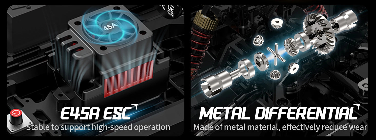 Compare with ABS Plastic gear, the rc trucks equipped with Aluminum Differential & Metal Main Drive Shaft to make the rc car more durable, A Truly hobby model Level RC truck
