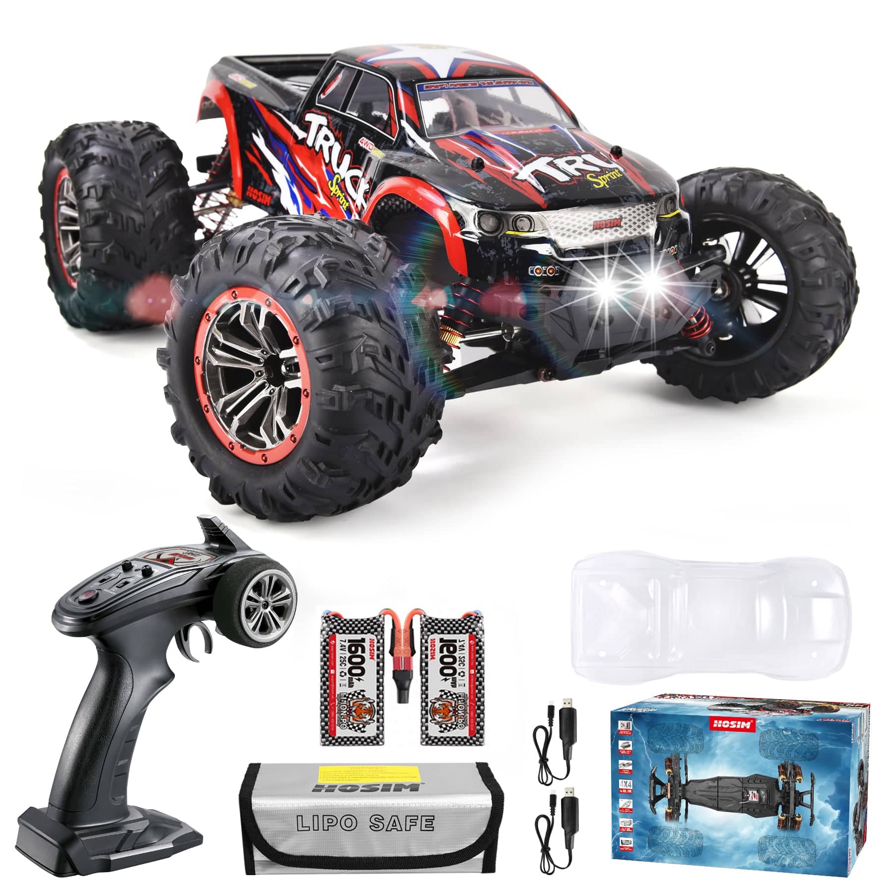 1:10 Scale big size and full proportional super-fast monster truck, all metal sealed ball Bearing are the oil filLed metal shocks special designed for tough environments and any rugged roads. Built with a steel chassis shaft structure and an independently stimulated shockproof system that reduces impact on the offroad rc cars unsteady drives.