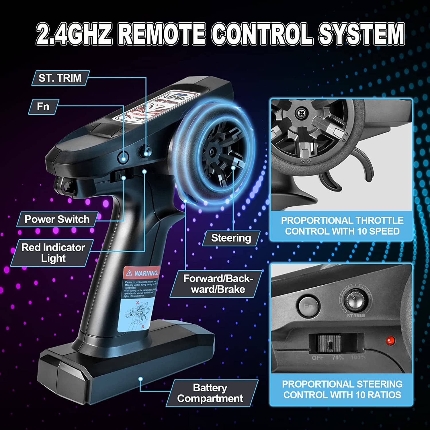 The RC Trucks come with upgraded version servo to ensure the longevity of the products. advanced linearity and accuracy with precision potentiometers,stable,low noise,water-proof