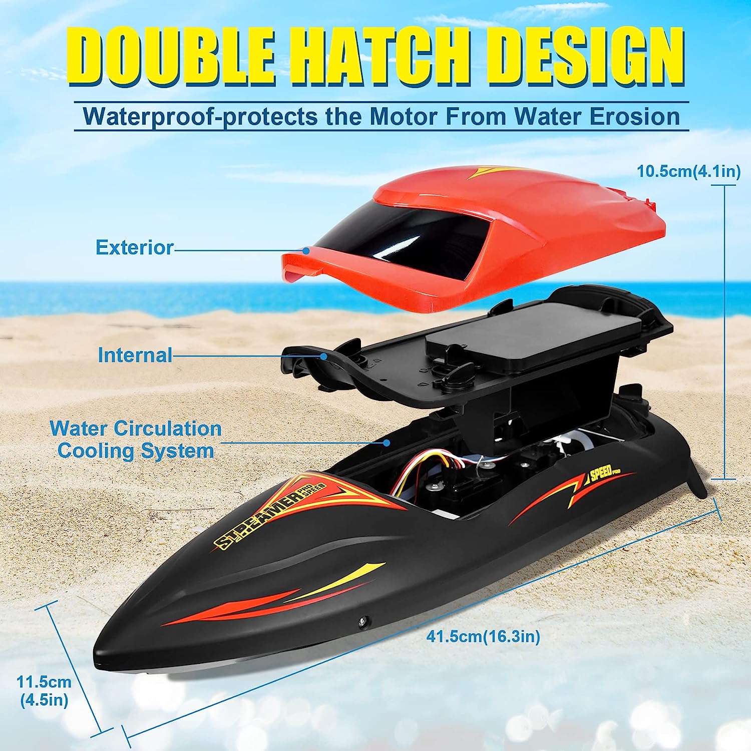 Our Brushless RC boat adapts a double-hatch design which makes the body of the boat have a perfect waterproof performance. thus never need to worry the motor will be damaged while running.