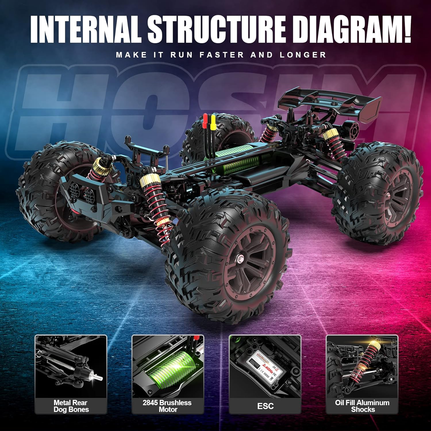 Hosim 1:16 RC Car HP905 Monster Truck Remote Control Car 2845 Brushless Motor with DIY Body Shell
