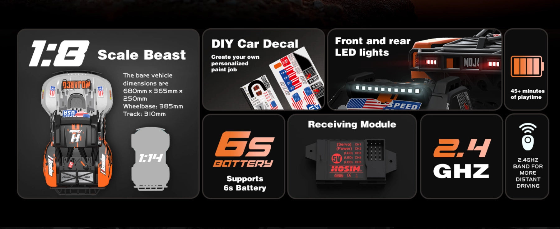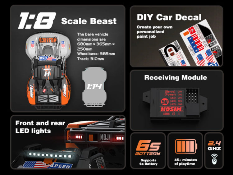 Whether you’re bashing, racing, or climbing, the M33 delivers professional-level performance. Its large 1:8 scale presence, detailed styling, and rugged construction make it a standout in any RC collection.