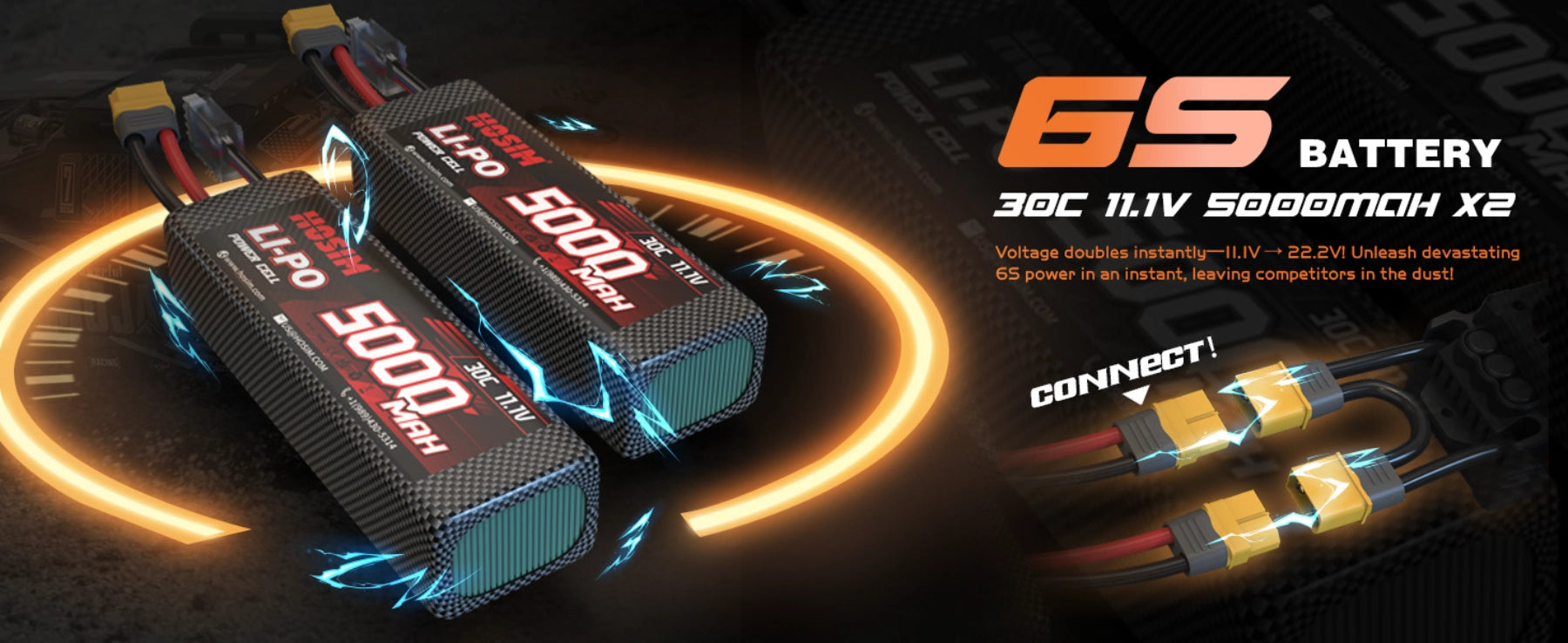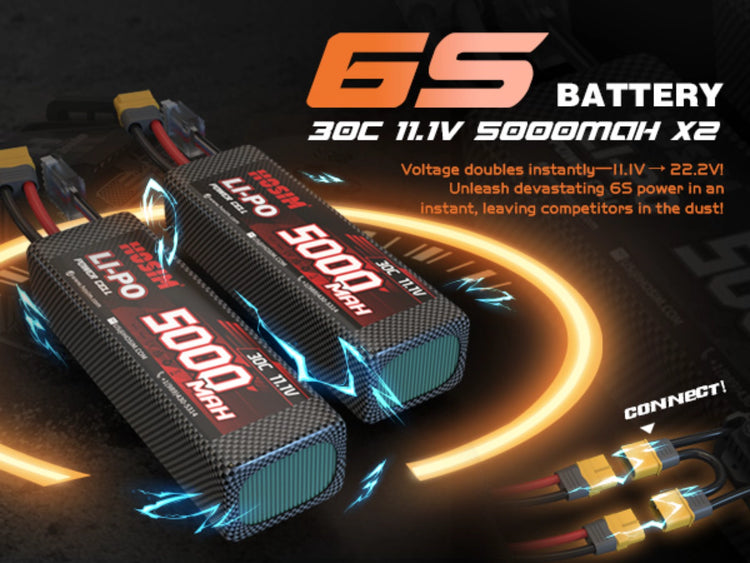 Two 3S 5000mAh LiPo batteries (series-connected for 6S)