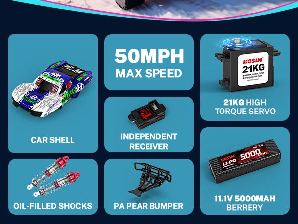 100KM/H Peak Performance: Blast through any terrain at a maximum speed of 100km/h (62+ MPH) with the included 3S setup.