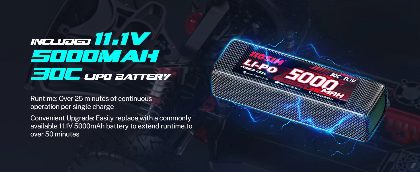 100KM/H Peak Performance: Blast through any terrain at a maximum speed of 100km/h (62+ MPH) with the included 3S setup.