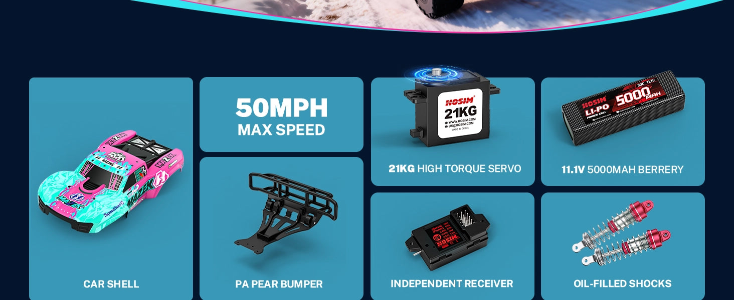 The M23 is a total hobby ecosystem in one box. It includes everything for maintenance and personalization: 19T speed gear, professional tool kit, custom body decals, LED roof light bar, and a silicone battery safety bag.