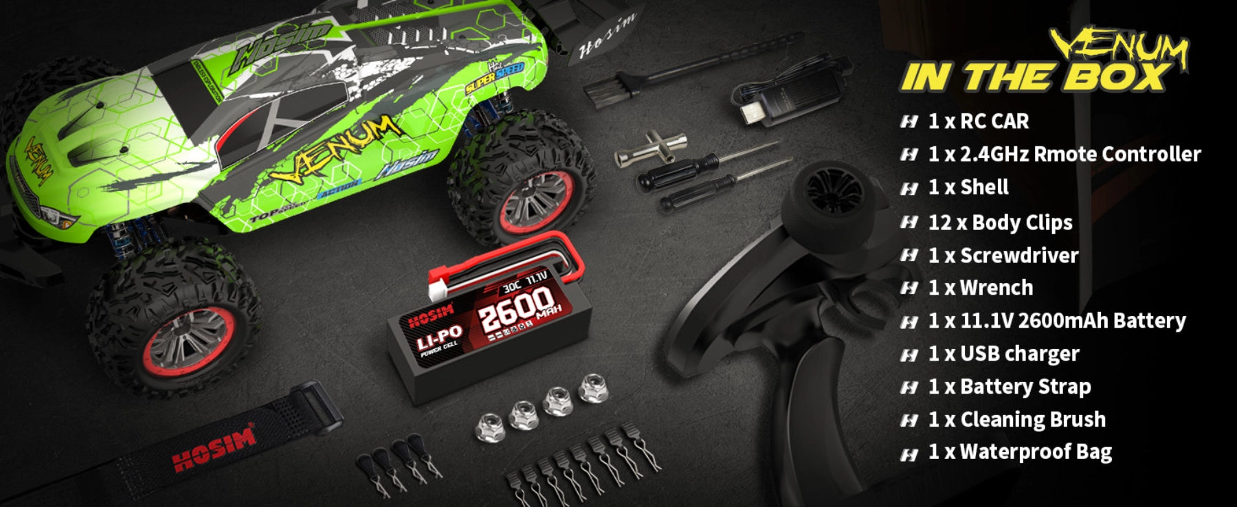 The 2.4GHz radio control system is sufficient to keep the control range stable up to 320 feet. Reliable forward, brake and reverse drive systems never fail. Waterproof electronics make this radio controlled truck an all-terrain vehicle. Highly responsive steering and throttle, you can race with your friends or kids at the same time.
